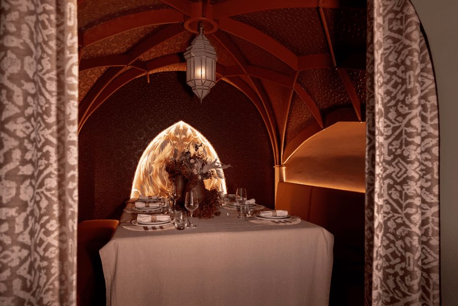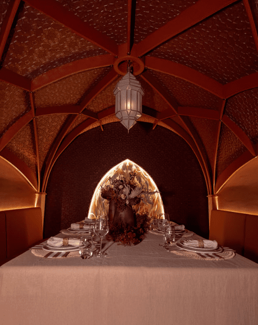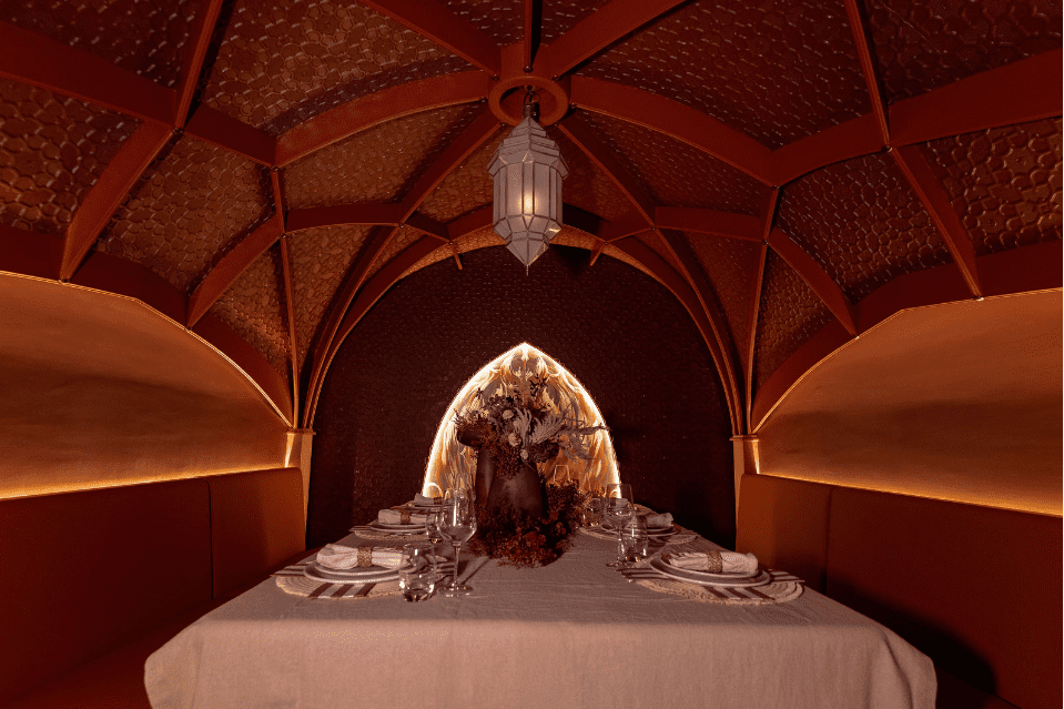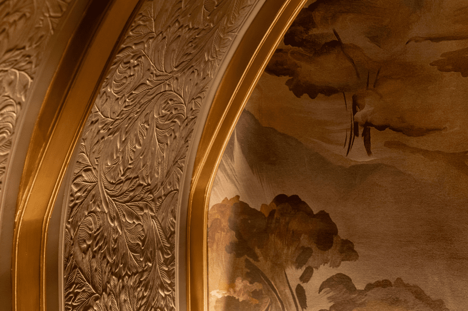 According to the Accanto Team these ‘Ornate embossed wallcoverings provide some of the project’s most defining visual moments as seen in the vaulted ceilings. These deeply textured surfaces resemble heritage plasterwork yet offer more flexibility and durability for contemporary use’.