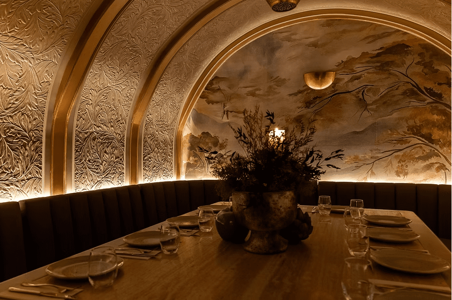 We were delighted that they chose two of our wallcoverings to create private dining spaces that feel emotionally engaging and at the same time grounded and luxurious.